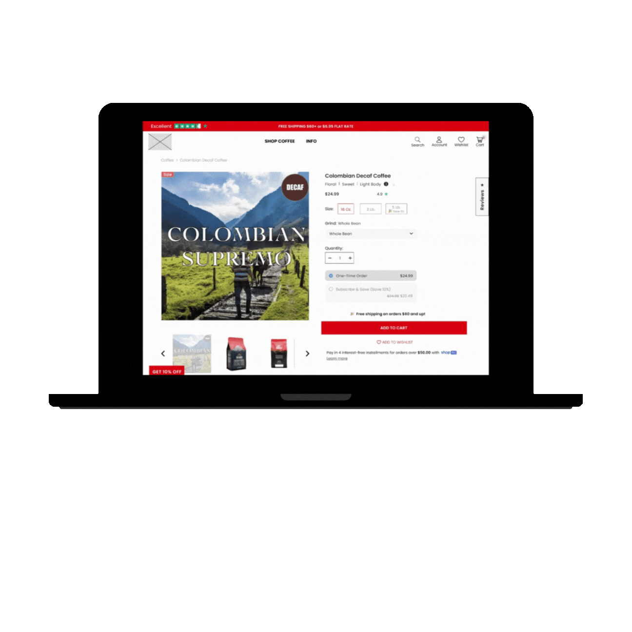 Subscription Options: Added expandable menus for grind and subscription choices to keep the interface clean and user-friendly.